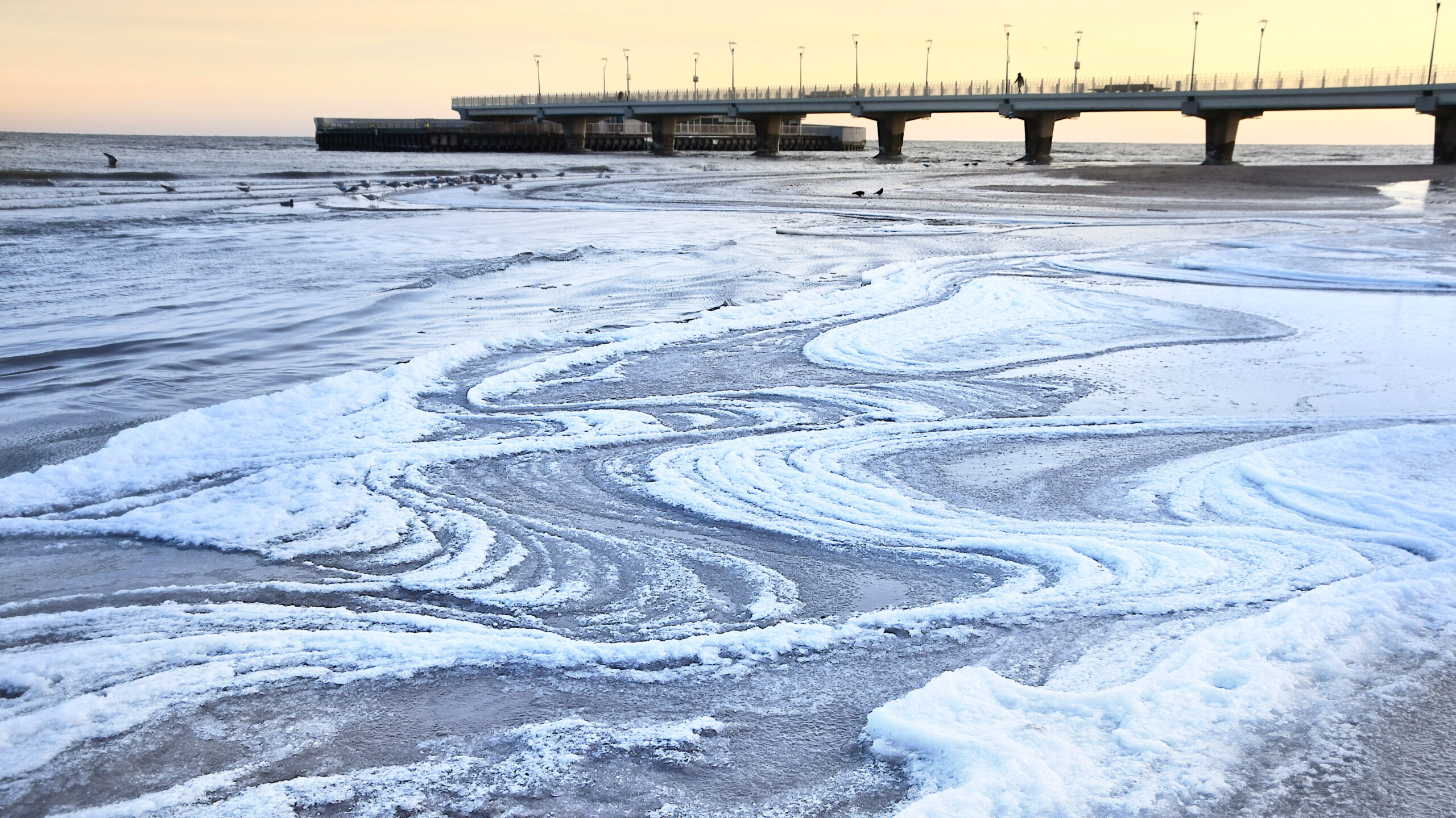 Chociaż już odwilż w pełni i już raczej należy spodziewać się wiosny, ale wrzucam jeszcze jedno zimowe zdjęcie z wzorami namalowanymi przez fale na zamarzniętej plaży.